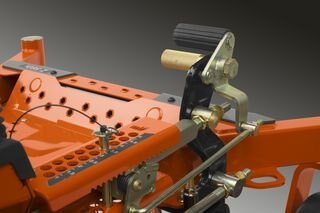 Deck height adjustment The deck lift system is spring assisted and allows convenient hand free operation. A simple locking pin adjusts cut height. |