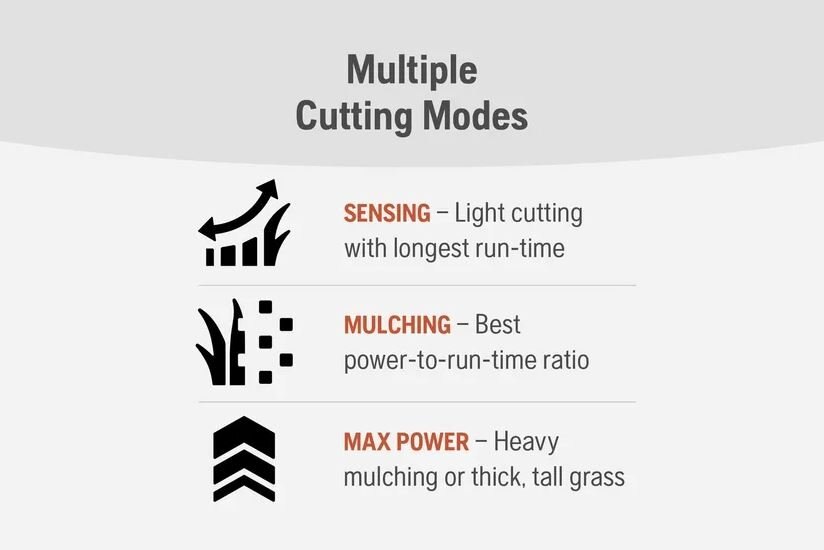 Includes auto-sensing, mulching and boost mode without any blade change |