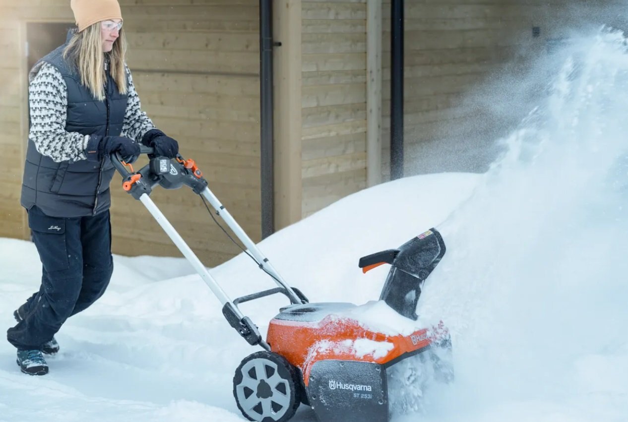 Husqvarna ST 253i battery snow blower ensures efficient snow clearing in midsized areas with its high-performance electric motor. It is exceptionally easy to start and operate with a simple and intuitive bail lock function. Stepless auger speed adjustment provides precise control of the discharge, which is particularly beneficial in sensitive areas, and the electric chute rotation ensures quick and ergonomic use. Other user-friendly features include a folding handle that facilitates storage and an LED light for excellent working light and visibility in dark conditions. ST 253i is part of Husqvarna's flexible 40V system BLi-X, allowing one battery to be used for several tools.