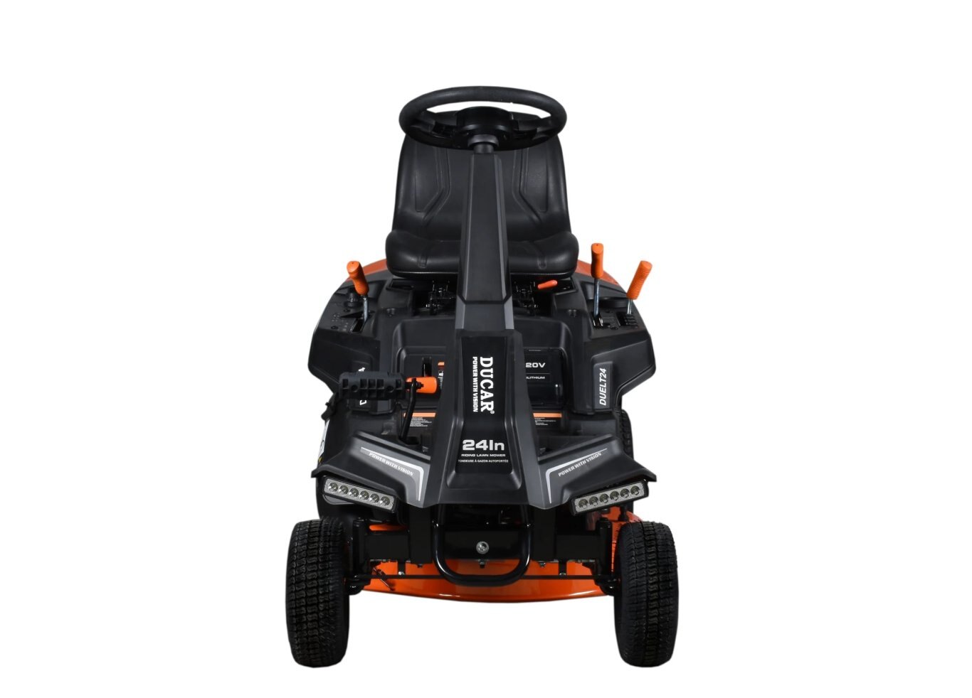 Engine : Ducar 224CC - 7 HP (single cylinder) Cutting width : 24 in Cutting height : 1.3 to 3 in Starting system : Electric Fuel tank capacity : 1.8 L Speeds : Forward 1 : 1.5 km/h Discharge : Side / Mulching / Rear collection Blade(s) : One blade Note : Engine oil not included |