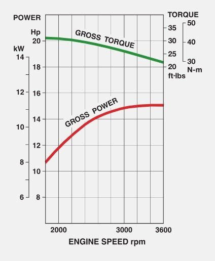15.0 hp (11.2 kW) at 3,600 RPM